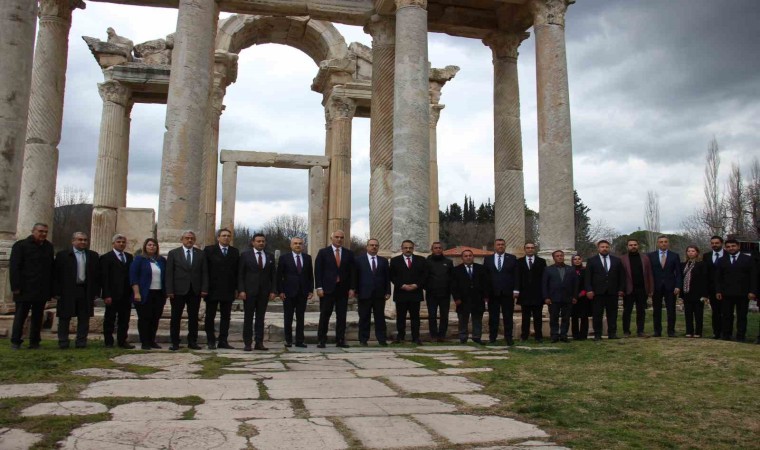 Kültür ve Turizm Bakanı Mehmet Nuri Ersoy, "Geleceğe Miras Aphrodisias" projesinin üçüncü toplantısını Aydın’da yaptı. Bakan Ersoy, Aphrodisias Antik Kenti’ni gezip yetkililerden bilgi aldı. Anadolu’nun kültürel birikimi ile Roma Dönemi heykeltıraşlık yeteneğini tanıtan bir medeniyet mirası olan Aphrodisias’ta olmaktan duyduğu memnuniyeti ifade eden Bakan Ersoy, Aphrodisias Antik Kenti’nin ünlü fotoğrafçı Ara Güler’in fotoğrafları ile ölümsüzleştiğini söyledi. Kentte görülen kalıntıların büyük bölümü Roma dönemine ait olduğunu belirten Ersoy, “Kent tiyatrosu, Odeion’u, muazzam tetrapylon’u ile büyüleyici bir görünüm taşımaktadır. Aphrodisiaslılar kendilerini heykeltıraşlık sanatındaki ustalıklarıyla Roma dünyasına tanıttılar, bizde onların mirasını yapacağımız koruma çalışmaları ile tüm dünyaya tanıtacağız” dedi.