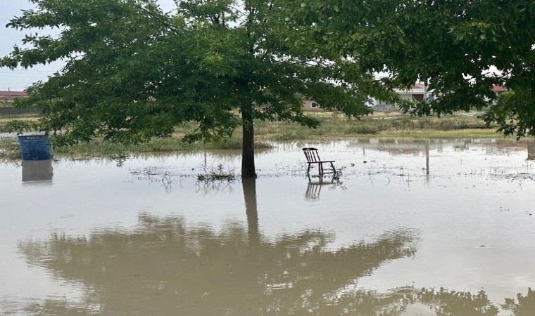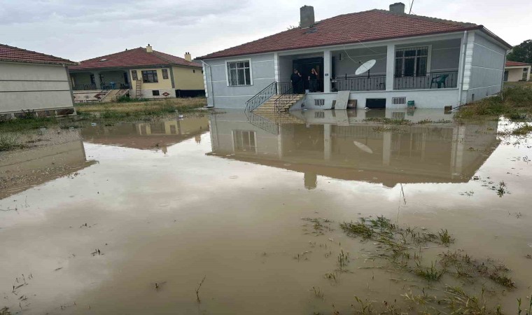 Konya’nın Kulu ilçesinde yağan şiddetli yağmur sonrasında oluşan sel hayatı olumsuz etkilerken bazı evlerin bahçeleri ile bodrum katları su ile doldu.