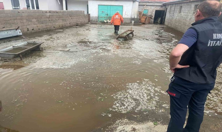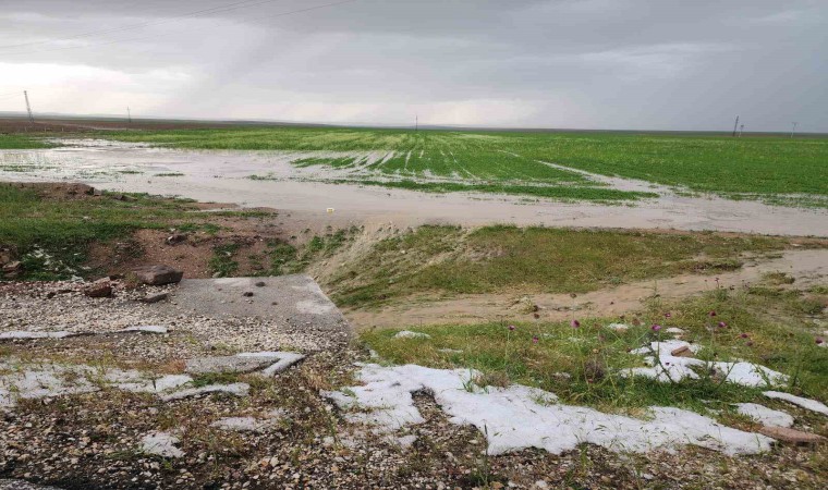 Konya’nın Kulu ilçesinde yağan şiddetli yağmur ve dolu, sel ve hasara neden olurken tarım alanları zarar gördü.
