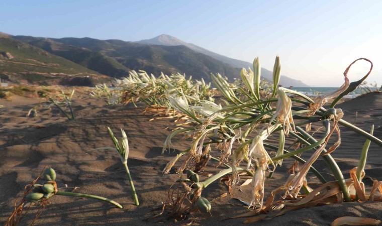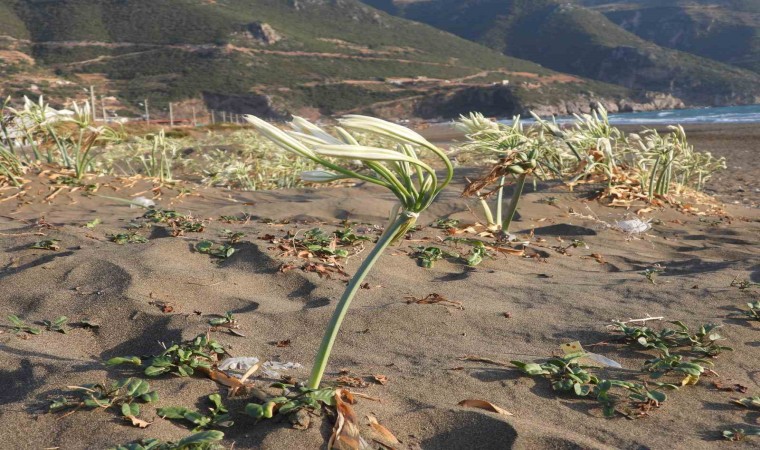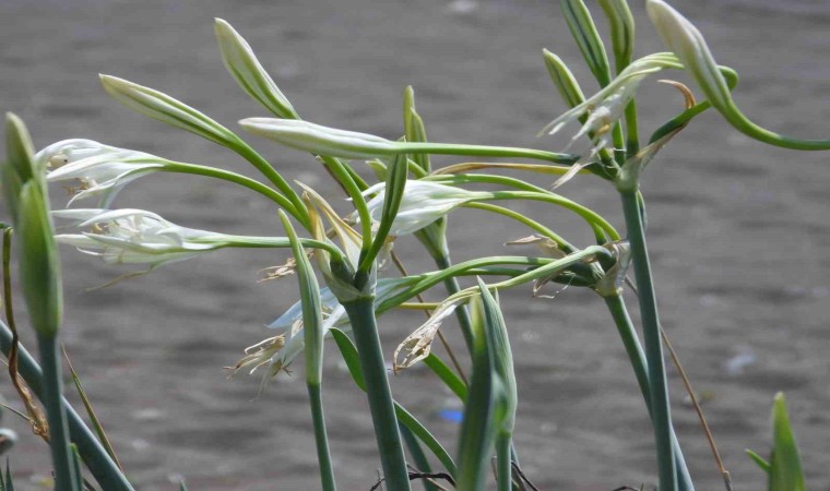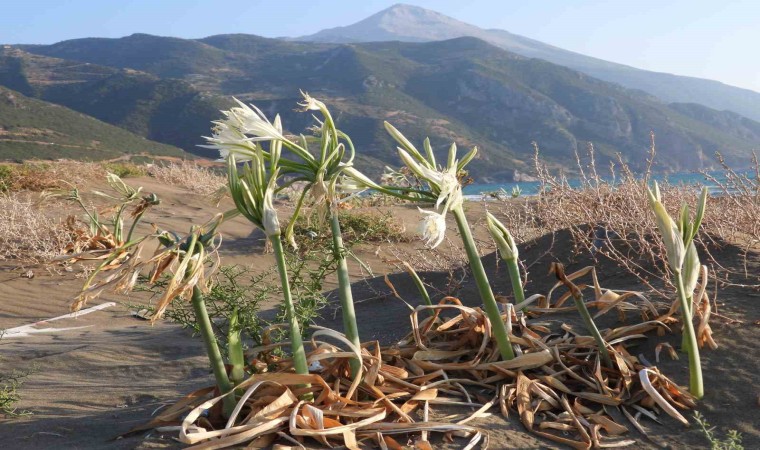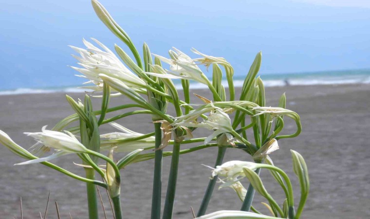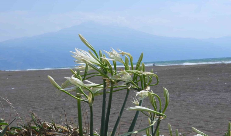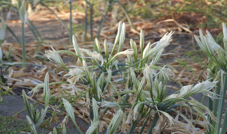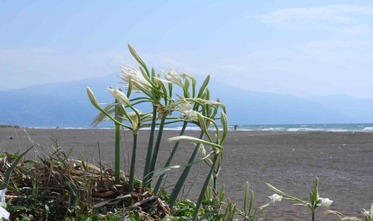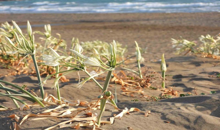 Hatay’ın Samandağ ilçesinde 14 kilometre uzunluğa sahip kumsalda yetişen kum zambakları görsel şölen oluşturuyor. Nesli tükenme tehlikesi altında olan ve Dünya Doğa Koruma Birliği’nce koruma altına alınan kum zambağını koparmanın 244 bin 315 TL cezası var.
