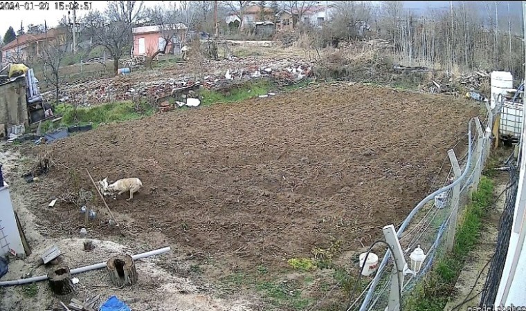 Hankendi Mahallesi’nde Bülent Bölükbaşı’na ait tavuk kümesine aç kalan köpek girdi. Köpek, bahçede bulunan kümese yaklaştıktan sonra tavuğu kovalayıp yakaladı ve bahçeden uzaklaştı. O anlar güvenlik kamerasına saniye saniye yansıdı.