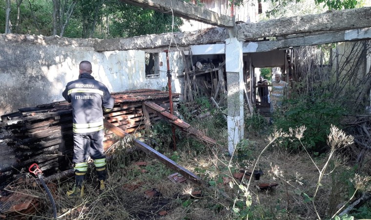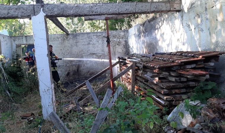 Bolu’nun Mudurnu ilçesinde istiflenmiş halde bulunan tahta parçalarının alev alması ile çıkan yangın, itfaiye ekiplerinin erken müdahalesiyle söndürüldü.