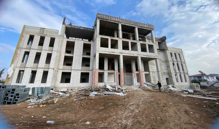Hatay’ın Kumlu ilçesinde inşa edilen hükümet konağının inşaatı devam ediyor.