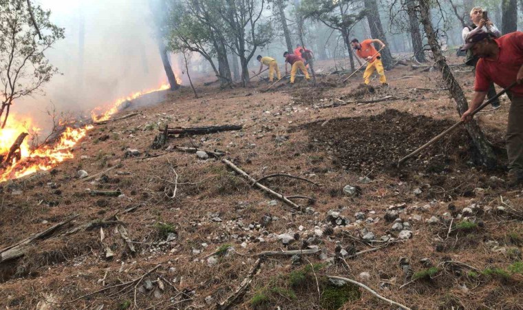 Antalya’nın Kumluca ilçesinde yıldırımdan kaynaklı çıkan orman yangınını söndürme çalışmaları devam ediyor. Dağlık ve sarp kayalık olan bölgede, 4 uçak ve 2 helikopterin yanı sırada karadan da ekipler yoğun çaba sarf ediyor.