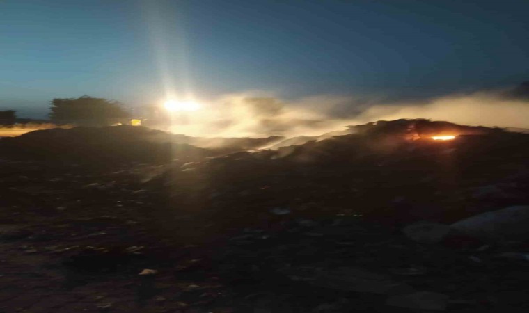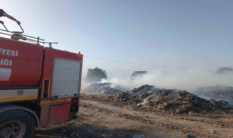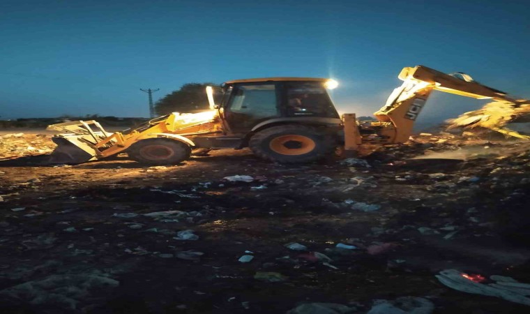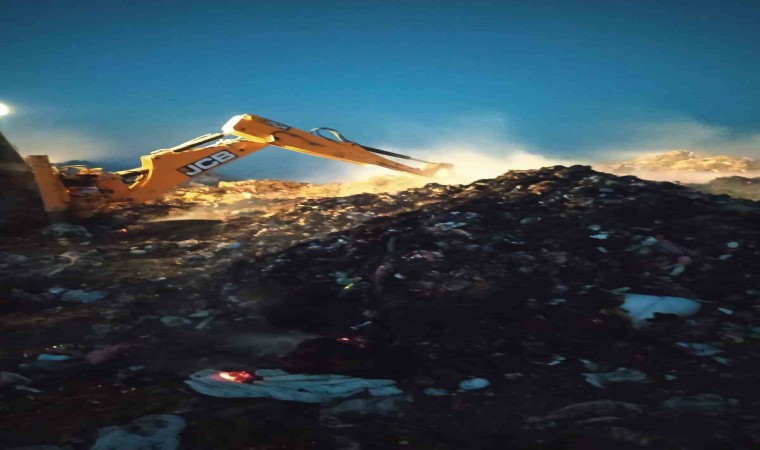 Hatay’ın Kumlu ilçesinde çıkan çöp yangını, kepçe yardımıyla söndürüldü.