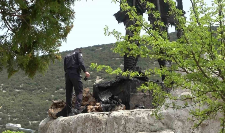 Denizli’nin Tavas ilçesi girişinde bulunan Milli Mücadele kahramanı Köpekçi Nuri Efe Abidesi, gece yarısı alevlere teslim oldu. Samanlık Mahallesi’nin kente hakim noktasında bulunan abidenin yangında enkaza dönmesi ilçede üzüntüye neden oldu. Kundaklanma şüphelisi üzerine durulan yangınla ilgili olarak başlatılan soruşturma kapsamında bölgedeki tüm güvenlik kamerası kayıtları incelemeye alındı. Polyester ve cam karışımından yapılan abide, yangında büyük zarar görürdü. Büyük bir bölümü yanan abide, dron ile görüntülendi. Bölgede tedbirlerini artıran polis ekipleri, Köpekçi Nuri Efe Parkı’nda geniş çaplı inceleme yaptı.