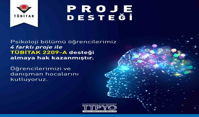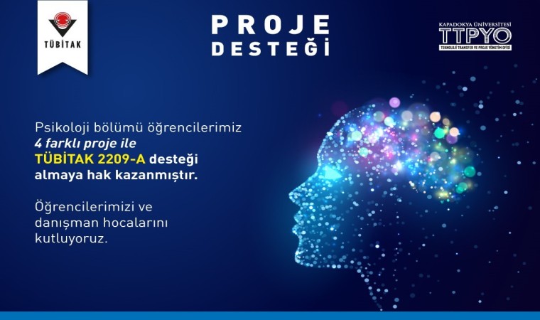 Kapadokya Üniversitesi (KÜN) Psikoloji bölümü öğrencileri Bilim İnsanı Destek Programları Başkanlığı (BİDEB) tarafından yürütülen ‘2209-A Üniversite Öğrencileri Araştırma Projeleri Destekleme Programı’ çerçevesinde 4 farklı projeyle destek almaya hak kazandı.