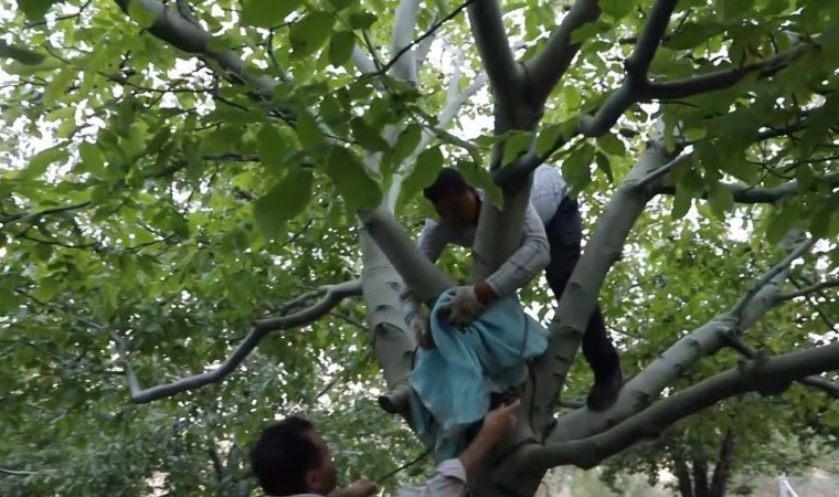 Kırşehir’in Kaman ilçesinde kuraklığa rağmen bahçelerde ceviz hasadı başladı.
