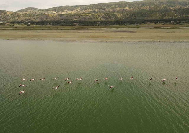 Kuraklıkla boğuşan Burdur Gölünde Flamingoların dansı