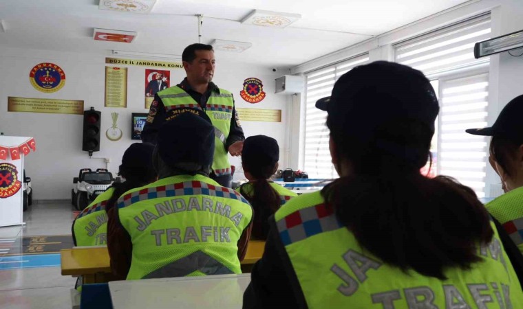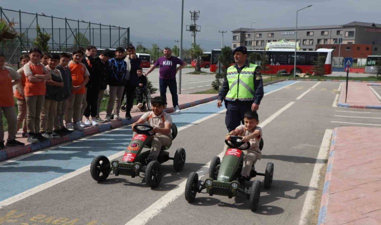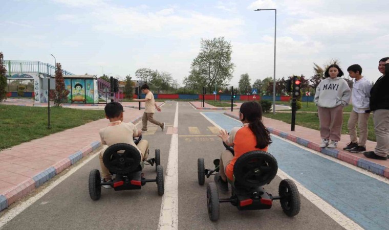Düzce’de trafik eğitim parkurunda ilkokul öğrencileri trafik kurallarını eğlenerek öğrendiler