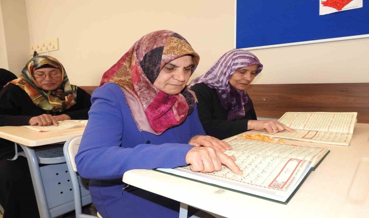 Gaziantep’te kadınlar için açılan Kur’an-ı Kerim kursuna katılan ve kiminin yaşı 80’in üzerinde olan kadınlar torunları yaşındaki gençlerle birlikte Kur’an-ı Kerim öğrenmenin mutluluğunu yaşıyor.