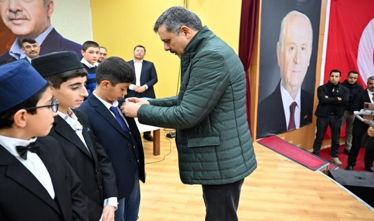 Vali Çiftçi, ortaokul kategorisinde derece elde eden hafızlara ödüllerini takdim etti.