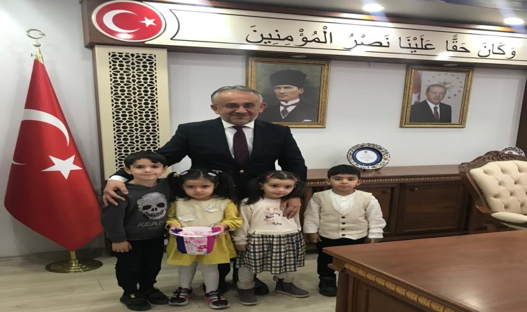 Kur’an kursu öğreticileri Kur’an kursu öğreticisi Zehra Bayhan’ın ve Esra Bayram’ın gözetiminde İl Müftülüğüne gelen minikler, harçlıklarını deprem bölgesindeki çocuklara gönderilmek üzere İl Müftüsü Bayram Danacı’ya teslim ettiler.