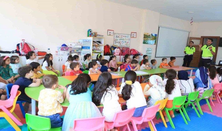 Elazığ’da Kur’an kursuna giden 4-6 yaş arası miniklere polisler tarafından trafik kurallarına ilişkin eğitim verildi.