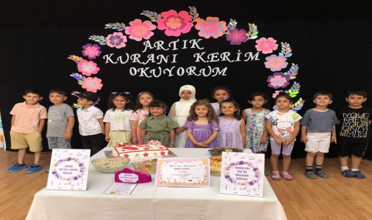 Kurs öğreticileri Zeynep Kış Karakul ve Fethiye Birsen Kaymak’ın organize ettiği Kur’an merasiminde, öğrenciler salavatlar ve ilahiler eşliğinde sahneye geldi. Öğrencilere Kur’an-ı Kerim hediye edildi ve Kur’an tacı giydirilerek çeşitli hediyeler verildi. Kur’an’a geçen öğrenciler de arkadaşlarına hediye dağıtarak sevinçlerini paylaştı. Öğrencilerin aileleri tarafından hazırlanan ikramların sunumuyla tören sona erdi.
