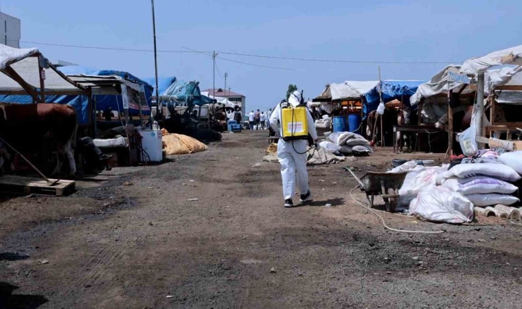 Kurban kesim ve satış yerlerinin hijyenini sağlamak amacıyla harekete geçen belediye ekipleri, kurban alımı ve kesimi sürecinde oluşabilecek hastalık risklerini tamamen ortadan kaldırmak için ilaçlama ve temizlik çalışmalarını birlikte gerçekleştiriyor.