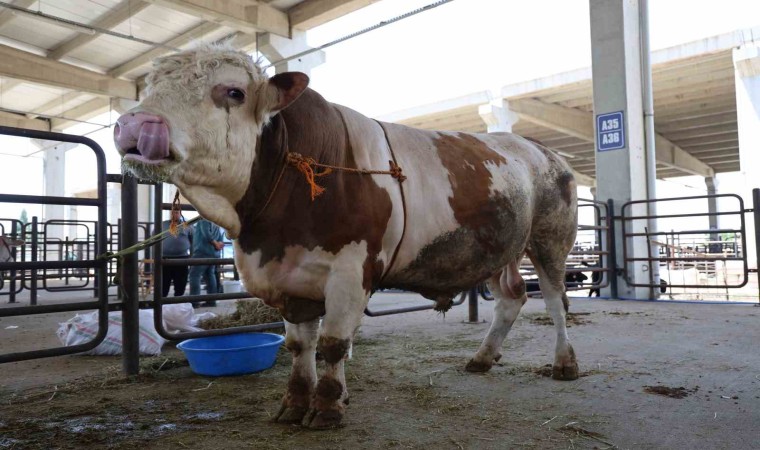Yaklaşan Kurban Bayramı öncesi Kahramanmaraş Canlı Hayvan Borsasında satışa çıkarılan 900 kilogramlık tosun, 230 bin liraya alıcısını bekliyor.