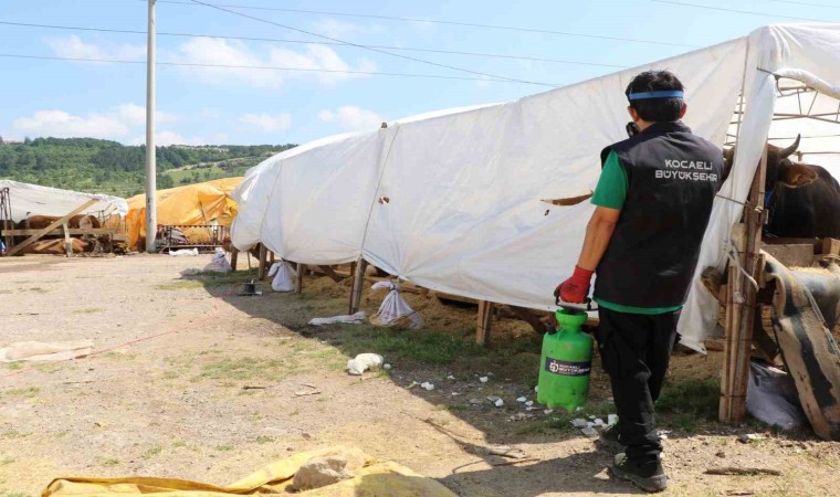 Kocaeli Büyükşehir Belediyesi Sağlık ve Sosyal Hizmetler Dairesi Başkanlığı Veteriner Hizmetleri Şube Müdürlüğü ekipleri, halk sağlığını tehdit eden bulaşıcı hastalıkların önüne geçmek amacıyla çalışma yürütüyor. Kurban çadırlarının etrafındaki gübrelik alanlar düzenli olarak ilaçlanarak, tehlikeli haşerelerin üremesi engelleniyor. Böylece, özellikle karasinek gibi vektör özelliği taşıyan canlıların çoğalmasının önüne geçiliyor.