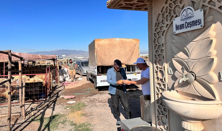 Satış alanı içerisinde gerekli altyapı çalışmalarını tamamlayan Dulkadiroğlu Belediyesi, kurban satıcıları ve vatandaşlar için ikram hazırladı.