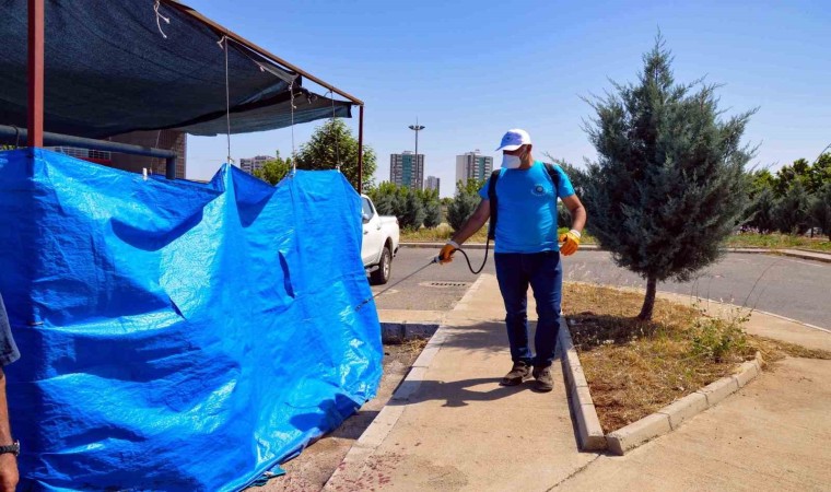 Diyarbakır Büyükşehir Belediyesi ekipleri kent merkezindeki kurban satış ve kesim yerlerinde ilaçlama ve temizlik çalışmalarına bayram boyunca devam ediyor.