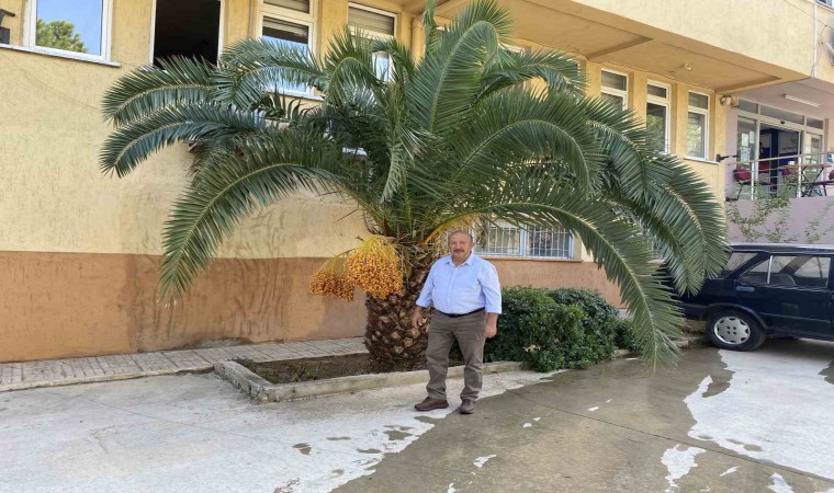 Manisa’nın Alaşehir ilçesindeki Halk Eğitimi Merkezi Müdürlüğü bahçesinde yıllar önce dikilen hurma ağacı küresel iklim değişikliğinden etkilenerek meyve vermeye başladı. Türkiye şartlarında meyve vermeyen ağacın bu yıl ilk meyvesini çıkarması hem vatandaşları hem de merkezde eğitim gören kursiyerleri hayrete çevirdi. Haber verilmesi üzerine ağaçta inceleme yapan Alaşehir Ticaret ve Sanayi Odası Başkanı Ziraat Mühendisi Mustafa Seyhan, hurmanın tadına da bakarak şartların uygun olup olmadığını değerlendirdi.