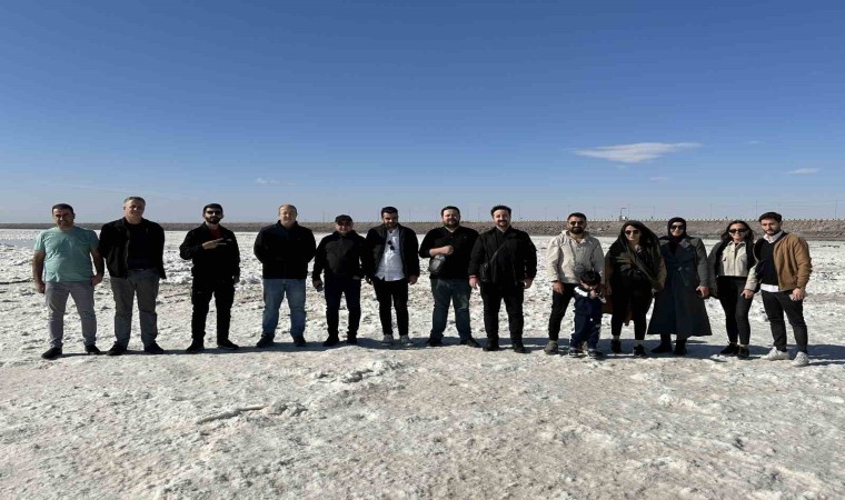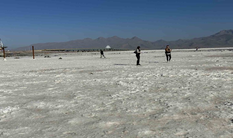 Hakkari’nin Yüksekova ilçesinden 15 kişilik grup, İran’ın Urmiye kentinde yer alan ve küresel ısınmadan dolayı su kaybı yaşayan Urmiye Gölü’nde yürüyerek fotoğrafladılar.