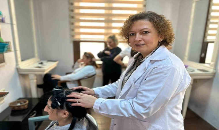 2020 yılında kapısında kursiyer olarak girdiği kuaförlük kursunda azim ederek usta öğretici olan Medine Gür, "Ben ilk olarak buraya kursiyer olarak başladım. 9 aylık bir eğitimle çıraklıktan usta öğreticiliğe kadar olan belgeleri tamamladım. Burada usta öğretici olarak işe başladım. Burada saça dair her şeyi öğreniyoruz. Buradan sertifikasını alan öğrencilerim tümü kendi işlerini kurabilir. Kursa talep gayet güzel. Gençlerimiz kuaförlük mesleğini tercih ediyor. Ev hanımları da bu mesleğe ilgi duyuyor” dedi.