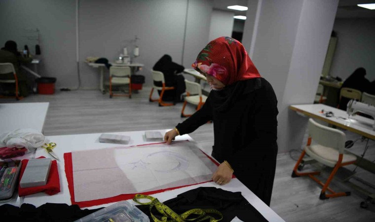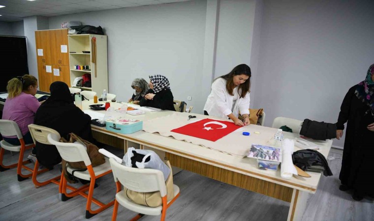 Çayırova’da dikiş kursunda eğitim alan kadınlar, 29 Ekim Cumhuriyet Bayramı öncesinde dikiş makinelerinin başına geçti.