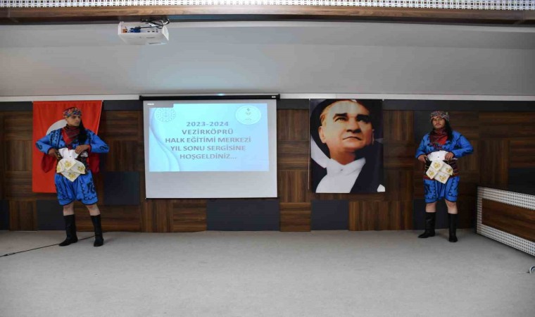 Samsun’un Vezirköprü Halk Eğitim Merkezinin açtığı 553 kursa katılan 10 bin 90 kursiyer, belge alma hakkı elde etti. Kursiyerlerin hazırladığı ürünler, açılan sergide görücüye çıktı.