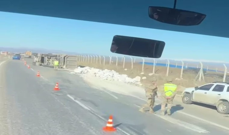 Siirt’in Kurtalan ilçesinde hafriyat kamyonunun devrildiği kazada sürücü hafif yaralandı.