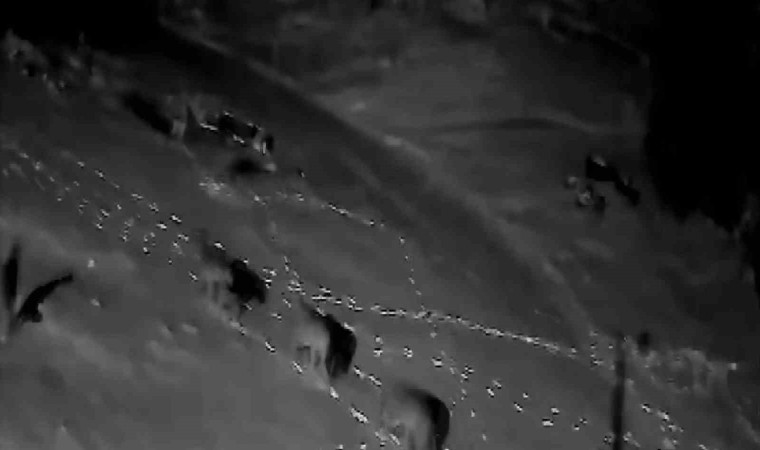 Sivas’ın Zara ilçesi Katıkcılar mevkiinde ağıl yakınlarına inen kurt sürüleri güvenlik kamerasına yansıdı.