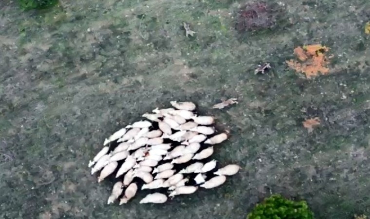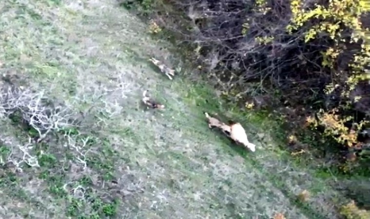 Bartın’da aç kalan 3 kurt, koyun sürüsüne saldırdı. Kurtların bu saldırısı hayvan sahibi tarafından dron ile görüntülendi.