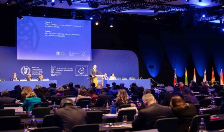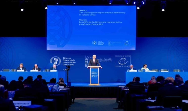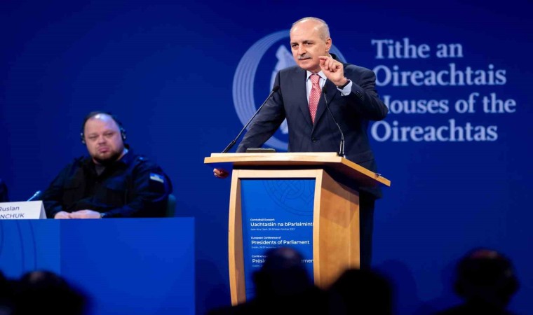 TBMM Başkanı Numan Kurtulmuş, İrlanda’nın başkenti Dublin’de düzenlenen Avrupa Parlamento Başkanları Konferansı’nın "İstikrarsız Dönemlerde Temsili Demokrasilerin Sınamaları" başlıklı ikinci oturumunda konuştu. Kurtulmuş, temsili demokrasilerin kurumsal varlığının parlamentolar, demokratik meşruiyetin ise seçimler ve siyasal katılımın önündeki engellerin kaldırılmasına bağlı olduğunu belirtti. Demokratik kurumların sağlıklı biçimde teşekkülünü ve işlemesini tehdit eden çeşitli faktörlerle de zaman zaman karşılaştıklarını dile getiren Kurtulmuş, bunların bir kısmının savaşlar ve darbeler gibi cebri müdahaleler, bir kısmının ise salgınlar ve doğal afetler gibi insani krizlerle ortaya çıkan durumlar olduğunu kaydetti.