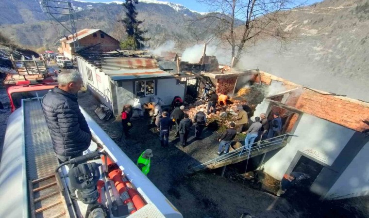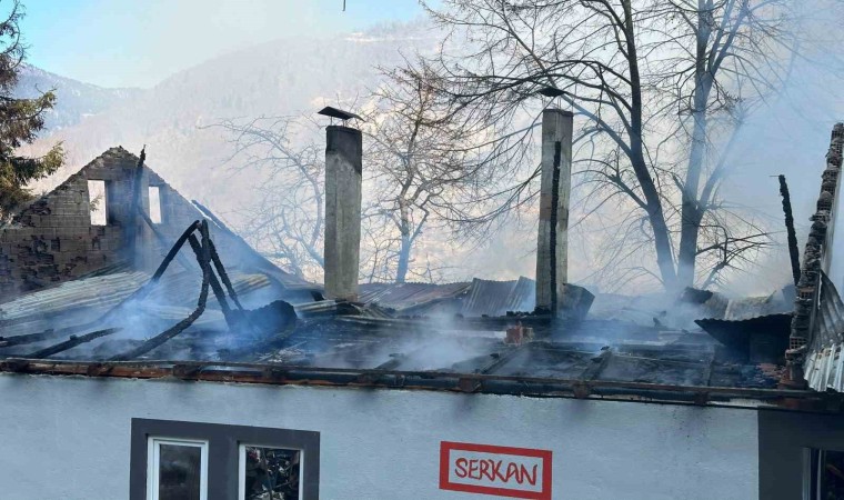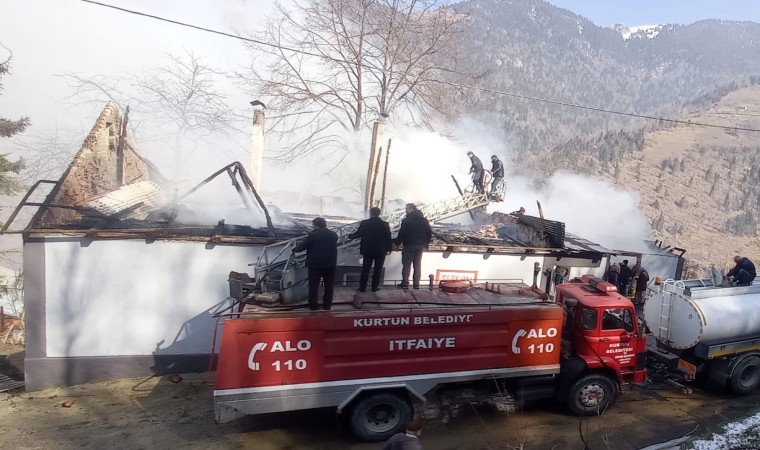 Gümüşhane’nin Kürtün ilçesine bağlı Kırgeriş köyünde çıkan yangında 4 engelli bireyin yaşadığı evin teras ve çatı katı küle döndü.