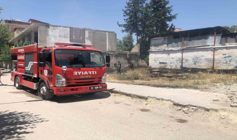 Adıyaman’da, ikametlerin arasında çıkan kuru ot yangını korkuya neden oldu.