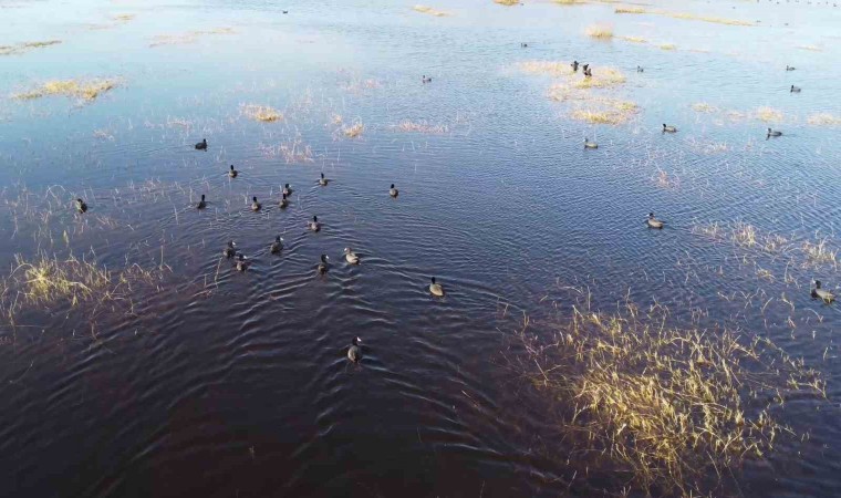 Baharın gelmesiyle kuşların durağı haline gelen ve şenlenen sulak alan dron ile havadan görüntülendi.