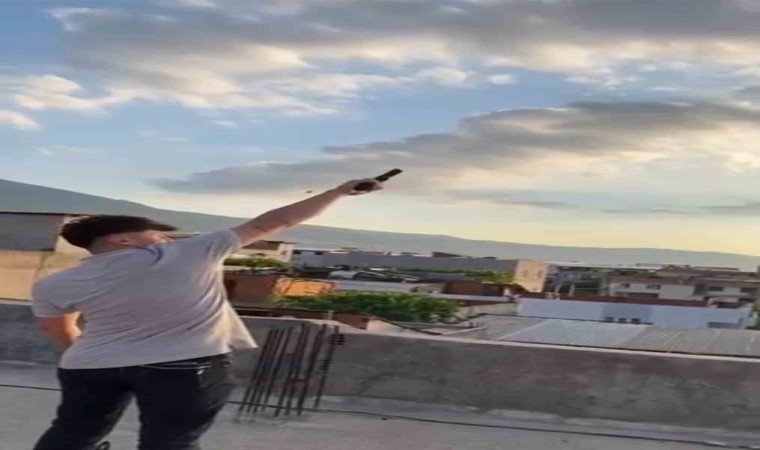 Bursa’da evinin çatısından tabanca ile havaya defalarca ateş açan şüpheli o anları kaydettirip sosyal medayada paylaştı. Polis ekipleri soruşturma başlattı.