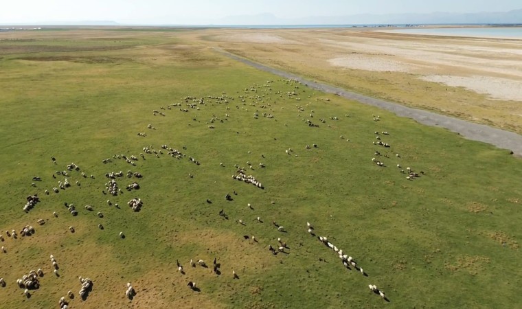 Bitlis’in Adilcevaz ilçesi sınırlar içerisinden bulunan ve ‘kuş cenneti’ olarak bilinen Arin Gölü, suyunun çekilmesiyle hayvanlar için otlak alınana dönüştü.