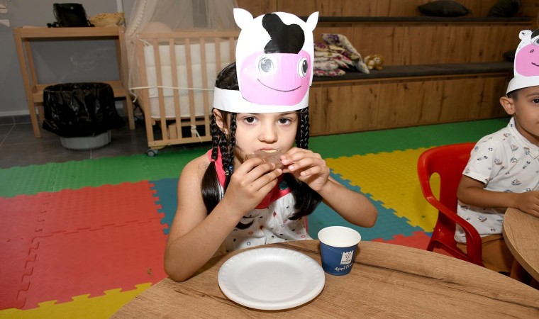 Kuşadası Belediyesi tarafından çocukların kişisel gelişimlerine ve ebeveynlerin bilgilendirme sürecine katkıda bulunmak amacıyla açılan ’Anne-Baba Çocuk Merkezi’nde atölye çalışmaları devam ediyor. Merkezde son olarak 3-6 yaş arası çocukların süt tüketme alışkanlığı kazanması amacıyla süt atölyesi düzenlendi.
