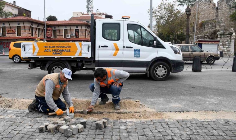 Kent genelinde meydana gelen sorunları en kısa süre içerisinde gidermek için yeni yılda da yoğun mesai yapmaya devam eden Acil Müdahale Koordinatörlüğü’ne bağlı ekiplerin son adresi ise Güzelçamlı Mahallesi oldu. Bu kapsamda ekipler Abbas Efendi, Adnan Menderes ve Nuri Yetmişbeş caddelerindeki yollarda ASKİ’nin gerçekleştirdiği çalışmalardan kaynaklanan bozulmaları kilit parke taşı döşeyerek hızlı bir biçimde giderdi.
