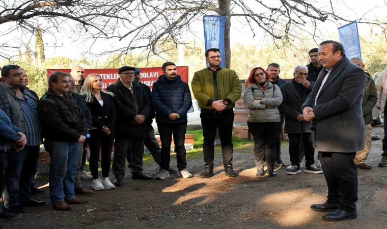 Kuşadası Belediyesi, balıkçı esnafının ardından Güzelçamlı’da faaliyet gösteren bal üreticilerine de malzeme desteğinde bulundu.