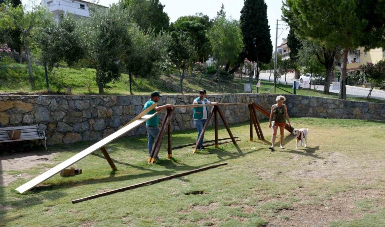 Kuşadası Belediyesi tarafından köpeklerin sahipleriyle birlikte kent ortamında daha keyifli ve özgür zaman geçirebilmeleri için açılan ‘Pako Köpek Eğitim Parkı’nda’ bakım çalışması başlatıldı. Park ve Bahçeler Müdürlüğü ekipleri, parktaki eskiyen eğitim ünitelerini yenileriyle değiştiriyor.