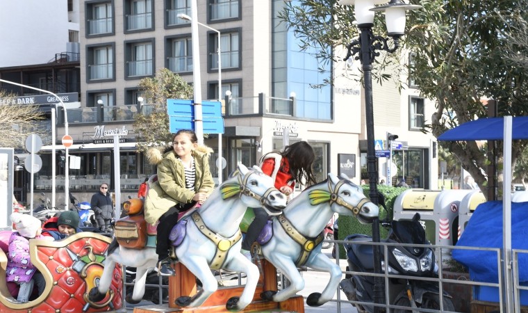 Kuşadası’ndaki öğrenciler, 15 günlük sömestr tatilinin keyfini Kuşadası Belediyesi tarafından İsmail Cem Dostluk ve Barış Meydanı’na kurulan oyun alanında çıkarıyor. Yoğun okul programından biraz olsun uzaklaşıp dinlenmek isteyen öğrenciler, ebeveynleriyle birlikte alana gelerek lunapark eğlencesinin tadını çıkarıyor. Oyun alanında çocuklar tarafından en çok rağbet gören oyuncaklar ise gondol ve atlıkarınca oluyor. Öğrencilerin sosyalleşmesini de sağlayan oyun alanı, 15 Şubat 2023 tarihine kadar hafta içi 12.00-18.00, hafta sonu ise 11.00-19.00 saatleri arasında ücretsiz olarak ziyaret edilebilecek.