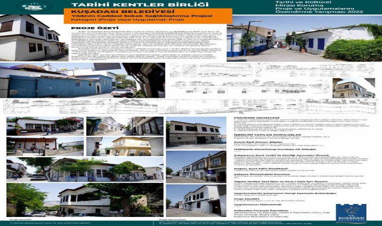 Tarihi Kentler Birliği (TKB) tarafından düzenlenen Tarihi ve Kültürel Mirası Koruma Proje ve Uygulamalarını Özendirme Yarışması’nda Kuşadası Belediyesi, ‘Yıldırım Caddesi Sokak Sağlıklaştırma Projesi’ ve Mücessem Hanım Evi olarak bilinen ‘75 Ada 39 Parsel Tescilli Yapı Rölöve, Restitüsyon ve Restorasyon Projesi’ projeleri ile iki ayrı başarı ödülüne layık görüldü.