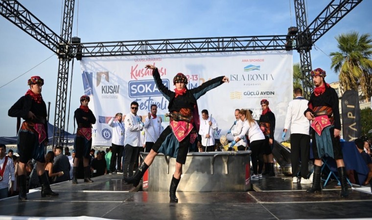 Uluslararası Kuşadası Sokak Festivali, keşkek bereketinin kent sakinleri ile paylaşılmasıyla final yaptı. 11 Ekim’de düzenlenen renkli bir kortej yürüyüşü ile başlayan ve 3 gün boyunca eğlence, lezzet, sanat ve müzik başlıklarında birbirinden keyifli etkinlik, atölye ve tadımlarla muhteşem bir atmosferde geçen Kuşadası Sokak Festivali’nin son gününde İsmail Cem Dostluk ve Barış Meydanı’nda keşkek ikramı yapıldı. 600 kilo buğday, 600 kilo dana eti, 200 kilo tereyağı ve 1,5 ton su kullanılarak pişirilen keşkeğin hazırlıkları bir gece önceden başladı. Kuşadası Profesyonel Aşçılar Derneği (KUPAD) liderliğinde Türkiye’nin farklı illerinden gelen 100 aşçı tarafından hazırlanan keşkeğin dövülmesi esnasında davul zurna eşliğinde sergilenen zeybek gösterisi festivale coşku kattı. Keşkeğin tadına bakmak isteyen festival katılımcıları dağıtım noktalarının önünde uzun kuyruklar oluşturdu.