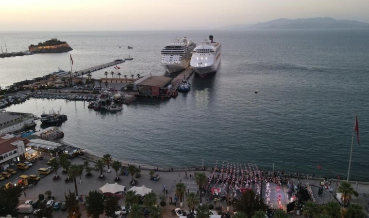 Cumhuriyet’in ilan edilişinin 100’üncü yıl dönümü tüm Türkiye’de olduğu gibi Kuşadası’nda da büyük bir coşkuyla kutlanıyor. Bu kapsamda Kuşadası Kent Konseyi tarafından Atatürk Meydanı’nda bir etkinlik düzenlendi. Tiyatro ve ‘Ata’dan oğula zeybek’ gösterilerinin sergilendiği etkinlikte, soprano Olcay Şahin ve KEGEV Hafif Batı Müziği Topluluğu kısa bir konser verdi. Kuşadası Belediyesi’nin desteğiyle gerçekleştirilen programa Kuşadalılar yoğun ilgi gösterdi. Kuşadalılar, etkinlik boyunca ellerindeki Türk bayraklarını sallayarak çalan marşlara eşlik etti. Programın finalinde ise 100 kişi aynı anda Atatürk’ün en sevdiği danslardan biri olan vals oynadı. Gecenin sonunda Kuşadası Belediye Başkan Vekili Seyfi Seyhan Suvari tarafından etkinliğe katkıda bulunanlara teşekkür plaketi verildi.