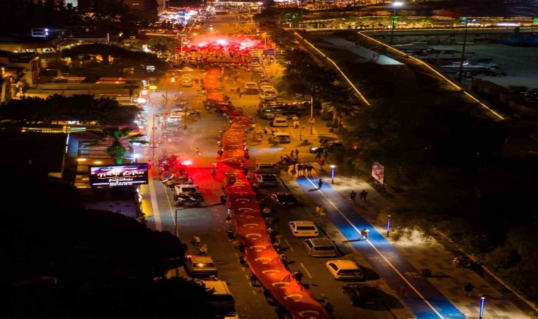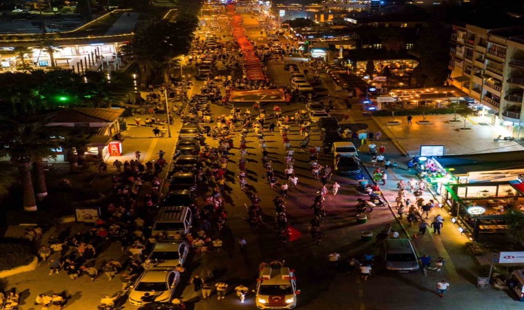 Kuşadası’nın düşman işgalinden kurtuluşunun 102’nci yıl dönümü dolayısıyla Kuşadası Belediyesi tarafından kentte fener alayı düzenlendi. Akşam saatlerinde Kısmet Otel kavşağından başlayan ve İsmail Cem Dostluk ve Barış Meydanı’nda sona eren fener alayında 250 metrelik dev Türk Bayrağı açıldı.