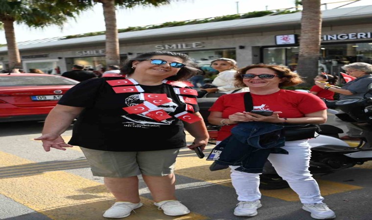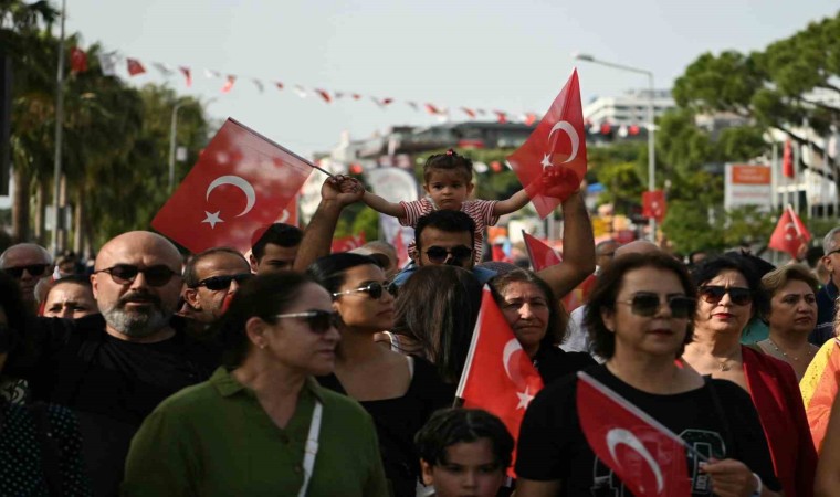 Renkli görüntülere sahne olan kortej, saat 17.00’de Kısmet Otel Kavşağından başladı. Atatürk Bulvarı üzerinde devam eden yürüyüşe her yaştan binlerce Kuşadalı ile birlikte Belediye Başkanı Ömer Günel, başkan yardımcıları, belediye meclis üyeleri, siyasi partilerin temsilcileri ve çeşitli sivil toplum örgütleri katıldı. Ellerinde Türk bayrakları ve Atatürk posterleri taşıyan Kuşadalılar, çalınan marşlar eşliğinde İsmail Cem Dostluk ve Barış Meydanı’na kadar yürüdü. Evlerinde balkonlarına çıkan vatandaşlar da kortej geçtiği sırada alkışlarla tempo tuttu. Kuşadası Şehit Kaya Aldoğan Lisesi mezunlarının oluşturduğu Veteran Bandosu ise sergilediği performansla alkış topladı.