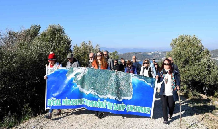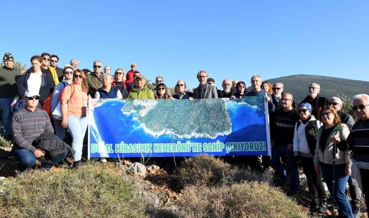 Kuşadası’nda çevreciler, yapılaşmaya açılmak istenen ve mülkiyeti Hazine’ne ait olan Türkmen Mahallesi’ndeki Kemerönü mevkiini korumak amacıyla harekete geçti. Bu kapsamda aralarında Kuşadası Kent Konseyi üyelerinin de bulunduğu çevreci derneklerin temsilcileri ve doğaseverler Kuşadası Sivil Toplum Platformu çatısı altında birleşerek, Kemerönü mevkiinin girişinde bir araya geldi. Farkındalık oluşturmak için eğimli arazide yaklaşık 2 kilometrelik zorlu bir yürüyüş ve tırmanış yapan çevreciler, bölgenin tepe noktasına ulaştıktan sonra basın açıklaması yaptı.