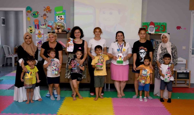 Kuşadası Belediyesi tarafından çocukların küçük yaşta çevre şuuru kazanması amacıyla Anne-Baba Çocuk Merkezi’nde geri dönüşüm atölyesi düzenlendi. Atölyede 3-6 yaş arası minikler, anneleriyle birlikte plastik su şişelerinden atık kutusu yaptı. Daha sonraysa evlerinden getirdikleri pil, cam şişe ve kağıt gibi malzemeleri Mobil Atık Getirme Merkezi’ne götürerek kasalara attı.
